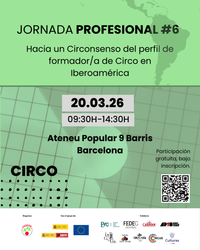 ¡Prepárate para dar un paso clave en la evolución de la educación circense! La Federación Española de Escuelas y Centros de Circo (FEECSE) organiza la Jornada Profesional #6, un espacio esencial para avanzar en la definición del perfil profesional del formador/a de circo en Iberoamérica.