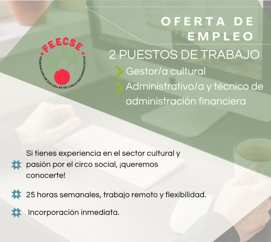 📢 Oferta de empleo: 2 puestos en la Federación de Escuelas de Circo Socioeducativo (FEECSE)